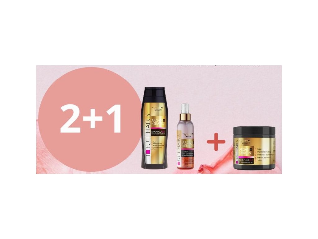 Balíček 2+1 řady ARGAN + KERATIN : Šampon 5v1, Maska na vlasy 5v1, 2-fázový kondicionér