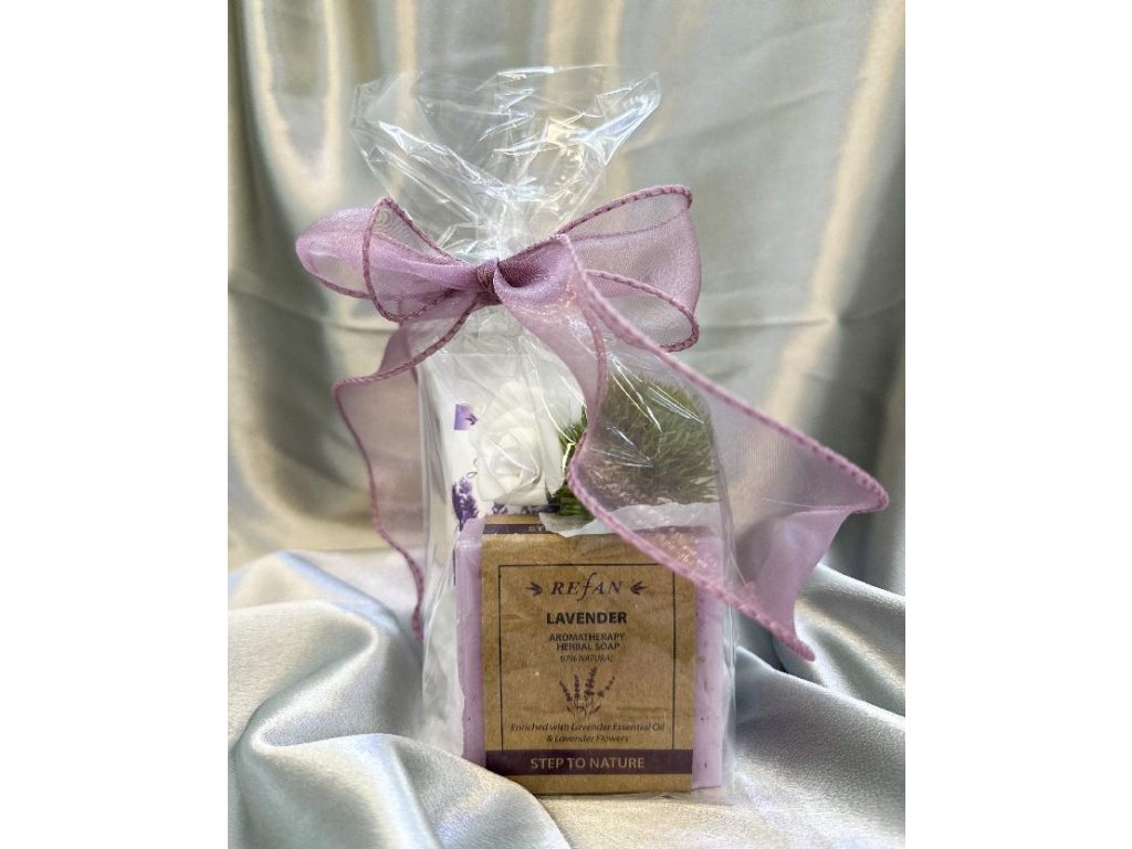 Dárková sada z řady Levander: aromaterapeutické bylinné mýdlo a krém na ruce.