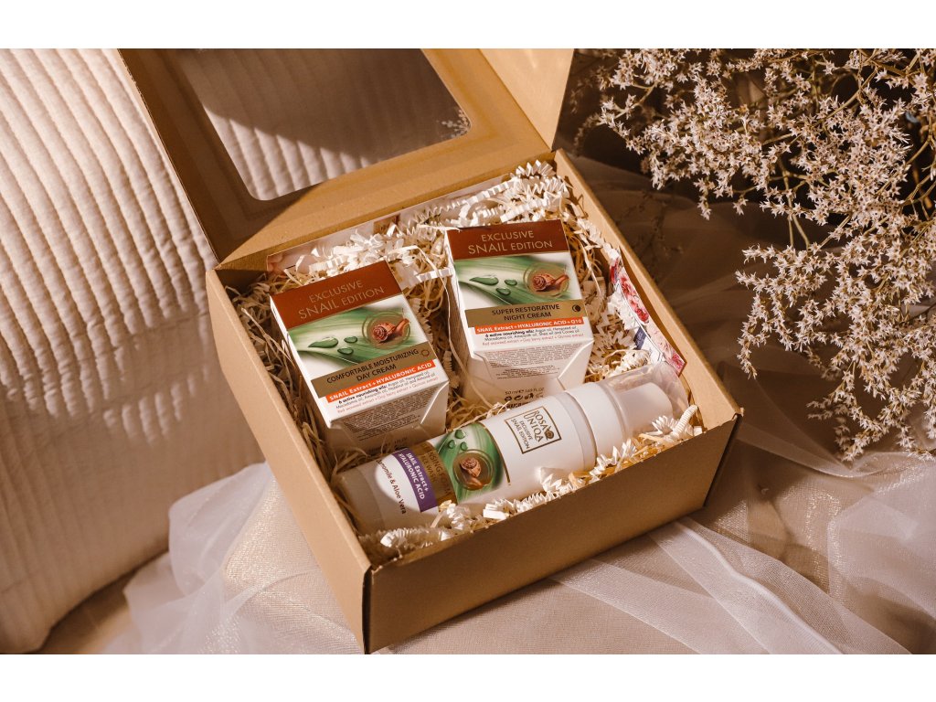 Dopřejte sobě nebo svým blízkým exkluzivní péči s dárkovým balíčkem, který obsahuje denní krém, obnovující noční krém a čistící pěnu na mytí obličeje z řady EXCLUSIVE SNAIL EDITION