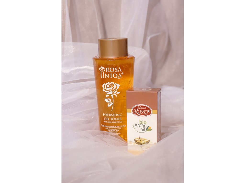Dopřejte sobě nebo svým blízkým exkluzivní péči s dárkovým balíčkem, který obsahuje bio arganový olej a hydratační gelové tonikum