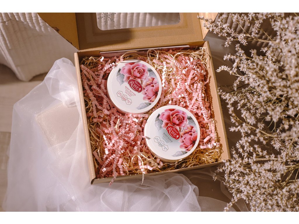 Dopřejte sobě nebo svým blízkým exkluzivní péči s dárkovým balíčkem, který obsahuje tělový peeling a tělové máslo z řady NATURAL ROSE
